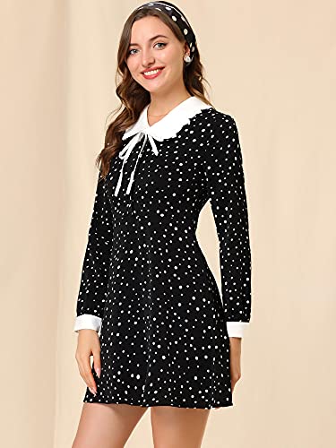 Allegra K Women’s Polka Dots Tie Neck Retro Vintage Contrast Peter Pan Collar Dress